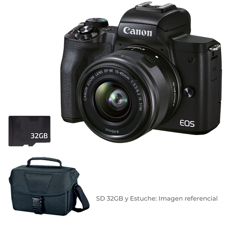 Dirigida a vloggers y creadores de contenido, la Canon EOS M50 Mark II negra es una cámara multimedia versátil con un completo conjunto de funciones de fotografía y video. Con capacidades mejoradas de enfoque, grabación y uso compartido, la M50 Mark II sigue girando en torno al probado sensor CMOS APS-C de 24,1 MP y el procesador de imagen DIGIC 8, que permiten una velocidad de disparo rápida de 10 fps, un rango de sensibilidad nativo de ISO 100-25600 y grabación de video UHD 4K a 23.98 fps, junto con Full HD 1080p60 y HD 720p120 para captura en cámara lenta.