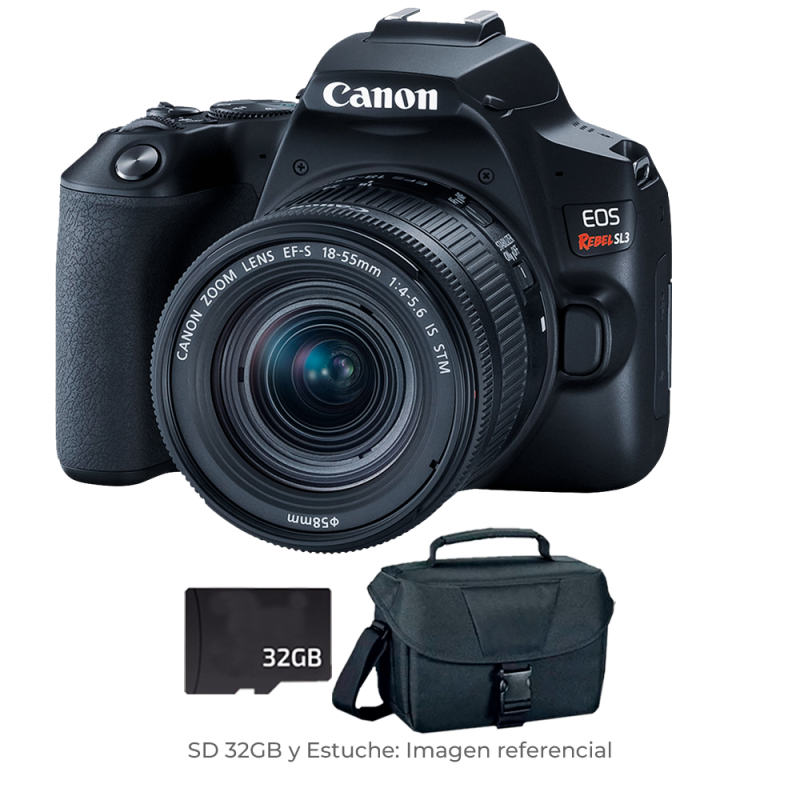 Con el cuerpo de la cámara se incluye el objetivo EF-S 18-55 mm f/3,5-5,6 IS II; un zoom estándar versátil que ofrece un rango de longitud focal equivalente de 28,8-88 mm y un perfil especialmente compacto, lo que lo hace ideal para viajes y tomas diarias. La lente cuenta con un elemento especializado para reducir la distorsión y mantener un alto grado de nitidez, y el Estabilizador Óptico de la Imagen minimiza la apariencia del movimiento de la cámara para lograr tomas manuales más nítidas.