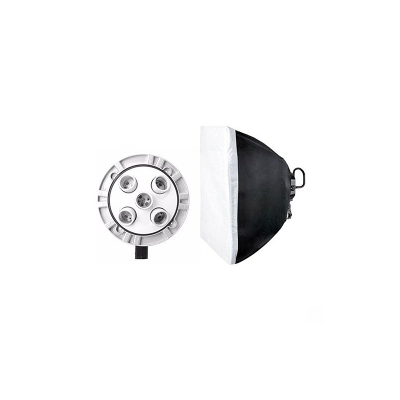 En cada softbox viene son su sistema de socket para 4 focos, tela difusora y 4 focos de 55w.